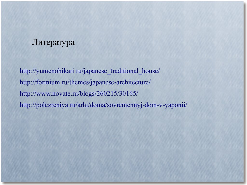 Литератураhttp://yumenohikari.ru/japanese_traditional_house/