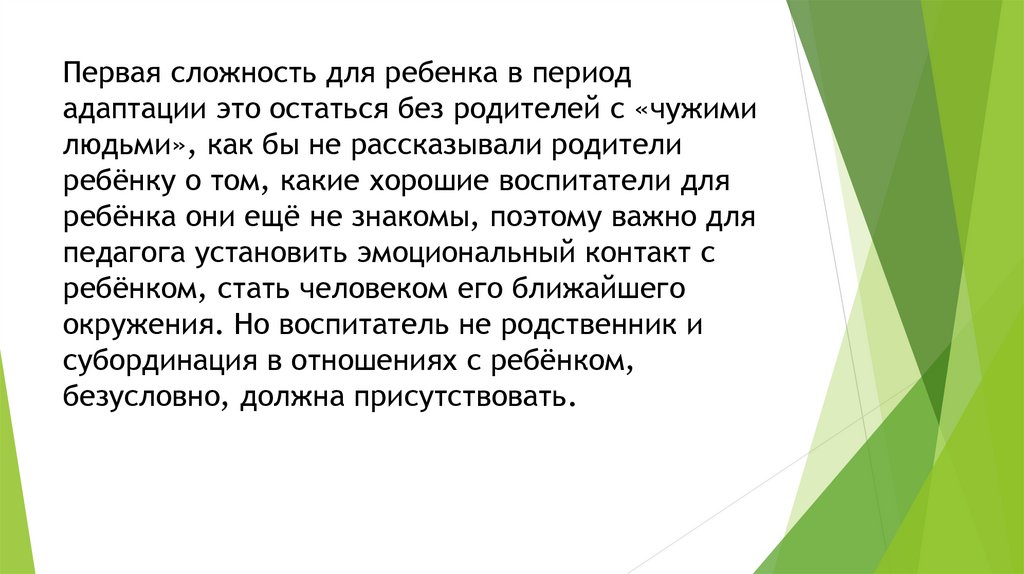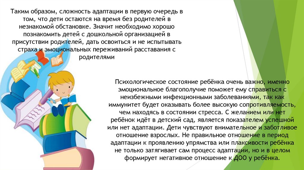 или нет адаптации. Дети чувствуют внимательное и заботливое