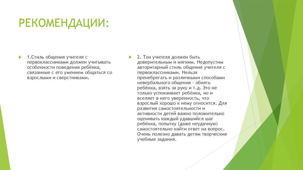 РЕКОМЕНДАЦИИ:1.Стиль общения учителя с