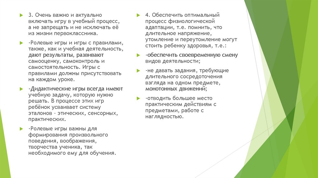 3. Очень важно и актуальновключать игру в учебный процесс,