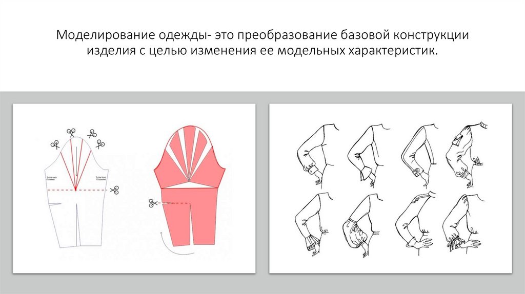 Моделирование одежды- это преобразование базовой конструкцииизделия с целью изменения ее модельных характеристик.