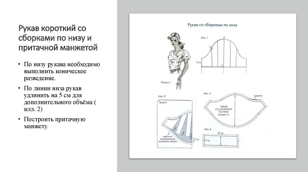 Рукав короткий сосборками по низу и