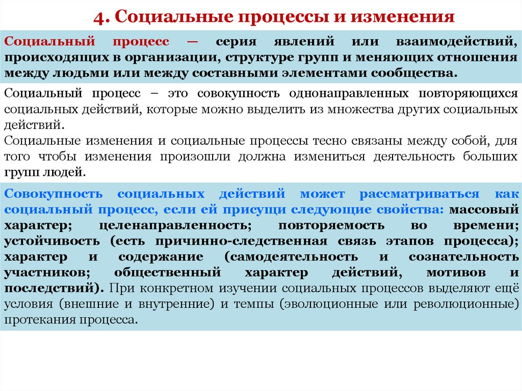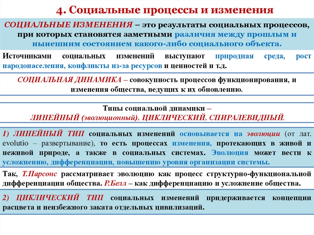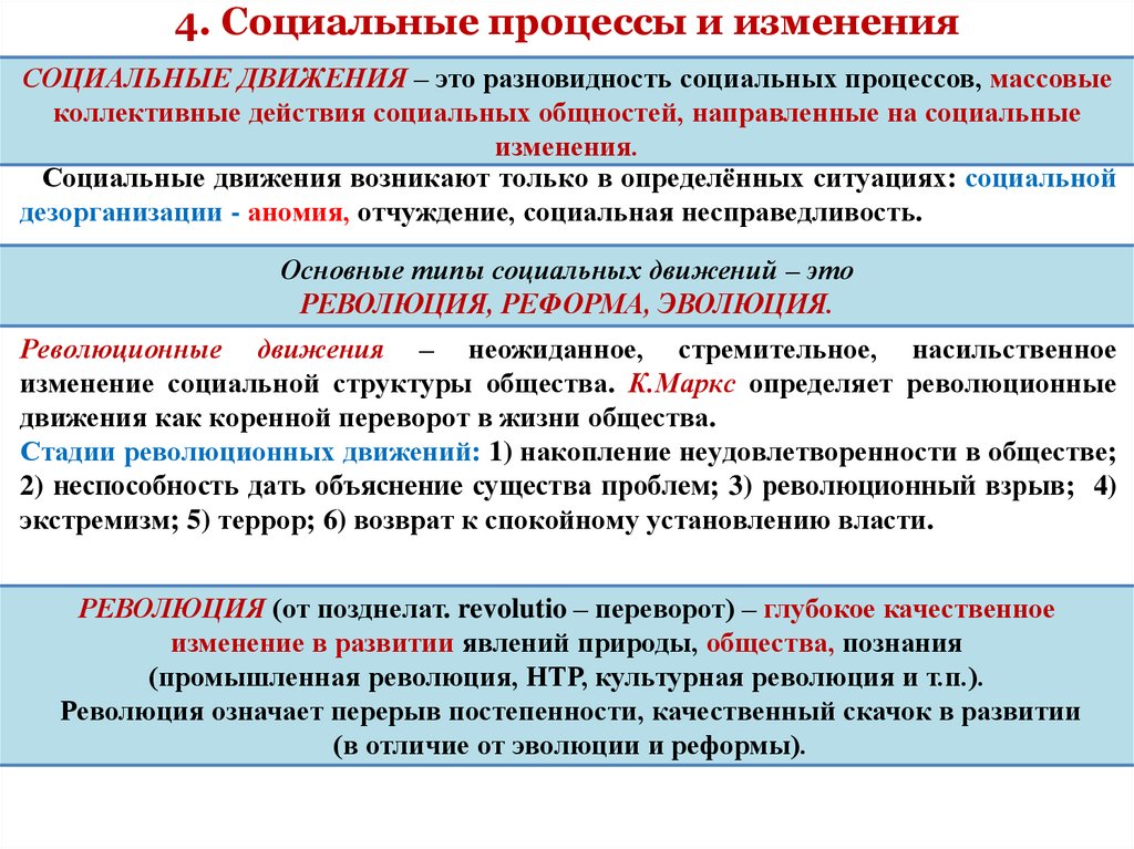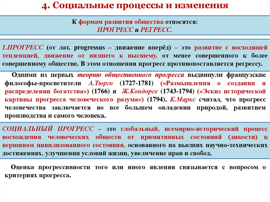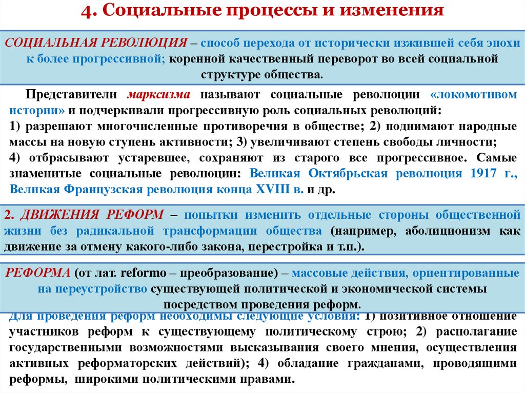 4. Социальные процессы и измененияК формам развития общества относятся: