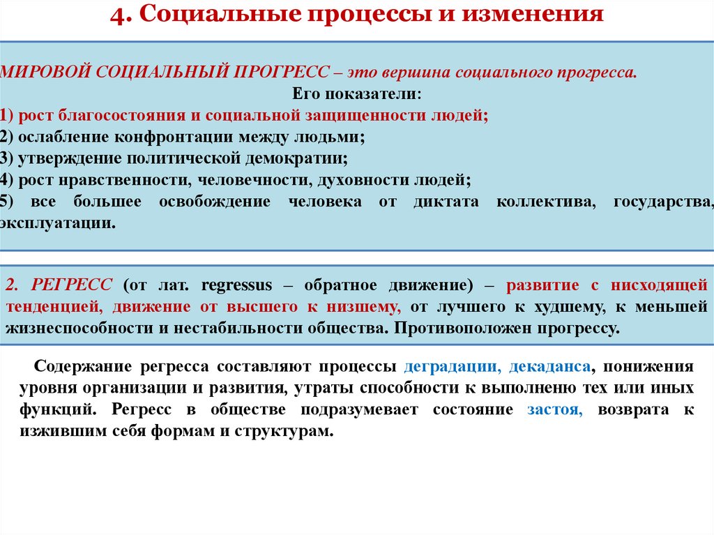 4. Социальные процессы и измененияМИРОВОЙ СОЦИАЛЬНЫЙ ПРОГРЕСС – это вершина социального прогресса.