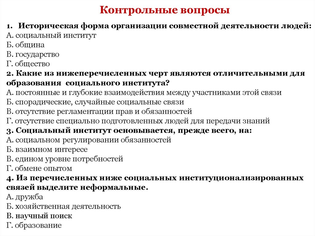 Контрольные вопросы1. Историческая форма организации совместной деятельности людей: