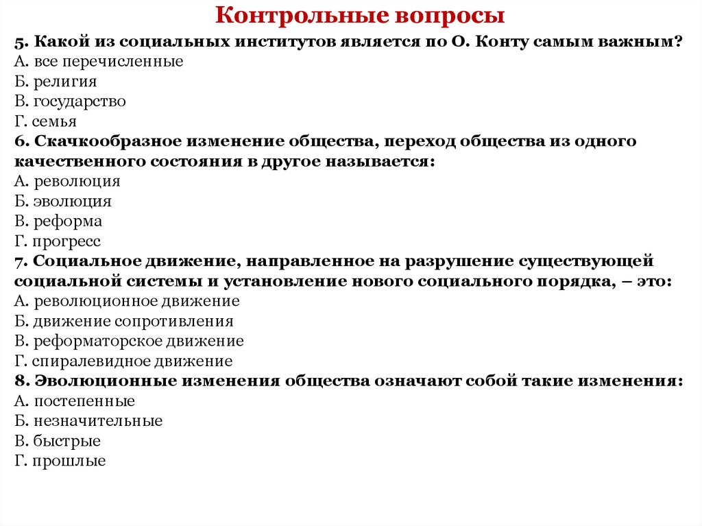 Контрольные вопросы5. Какой из социальных институтов является по О. Конту самым важным?