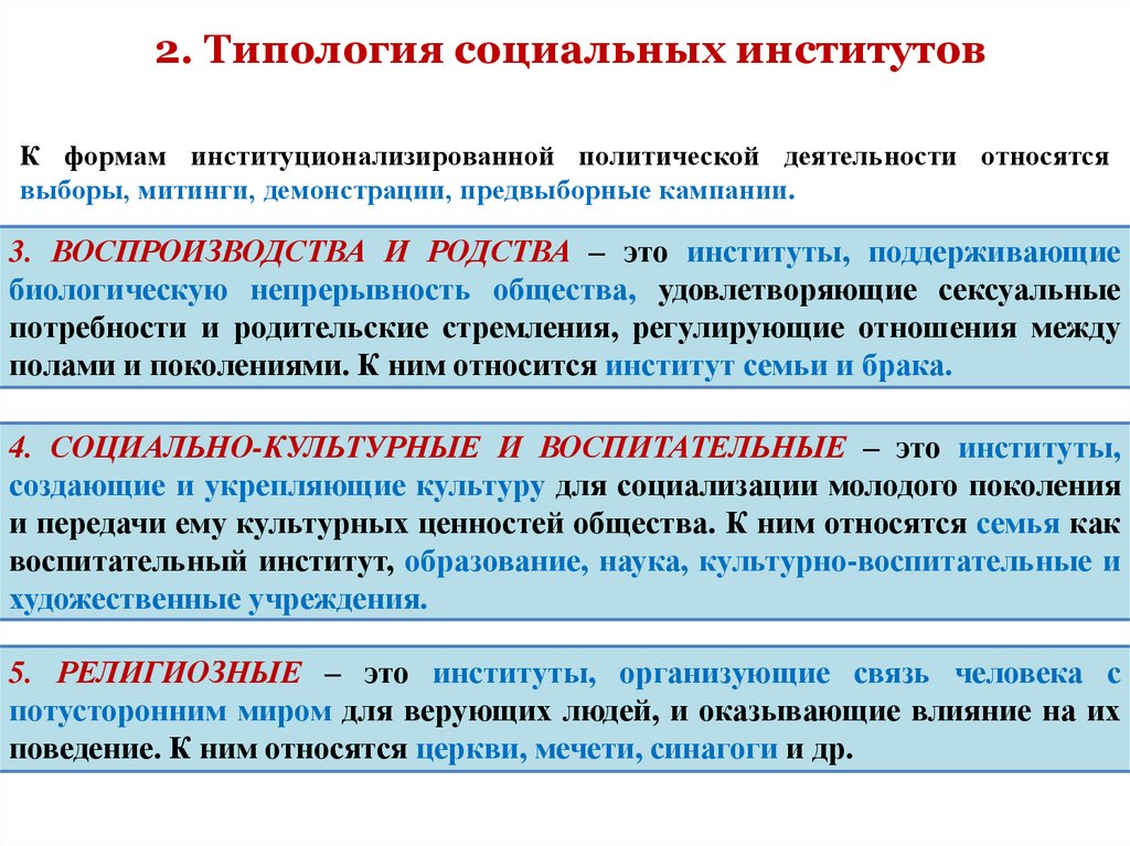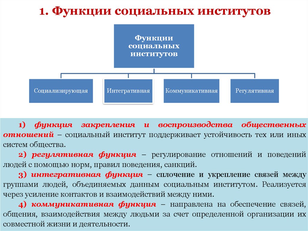 отношений – социальный институт поддерживает устойчивость тех или иных