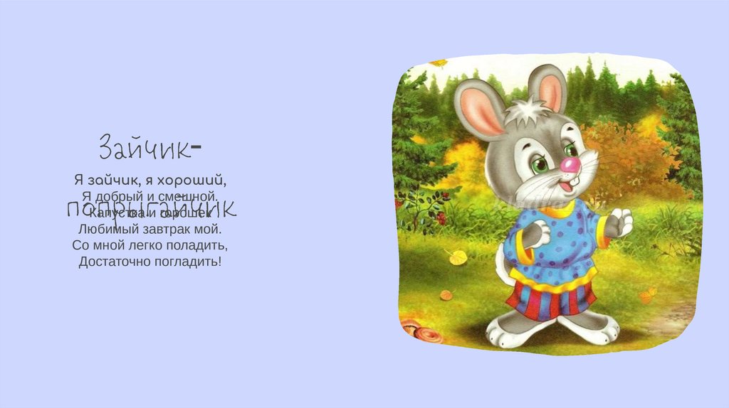Я зайчик, я хороший,Я добрый и смешной.