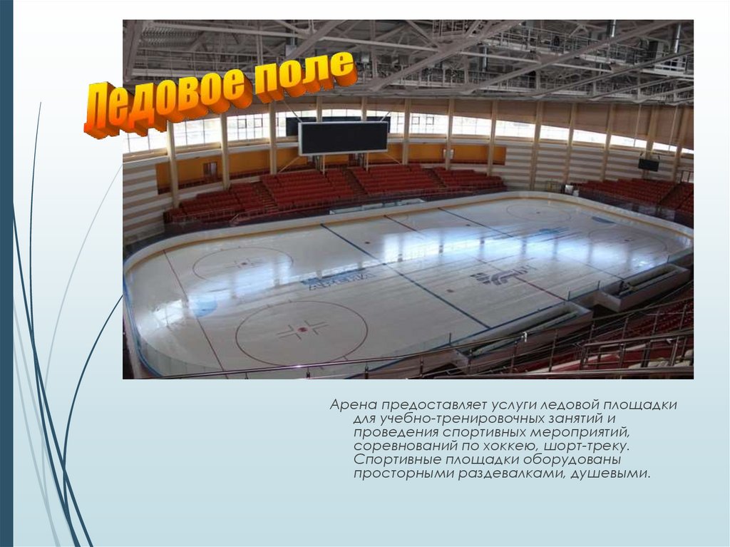 Арена предоставляет услуги ледовой площадкидля учебно-тренировочных занятий и
