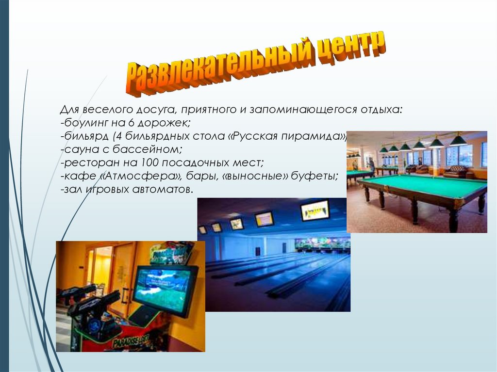 Для веселого досуга, приятного и запоминающегося отдыха:-боулинг на 6 дорожек;