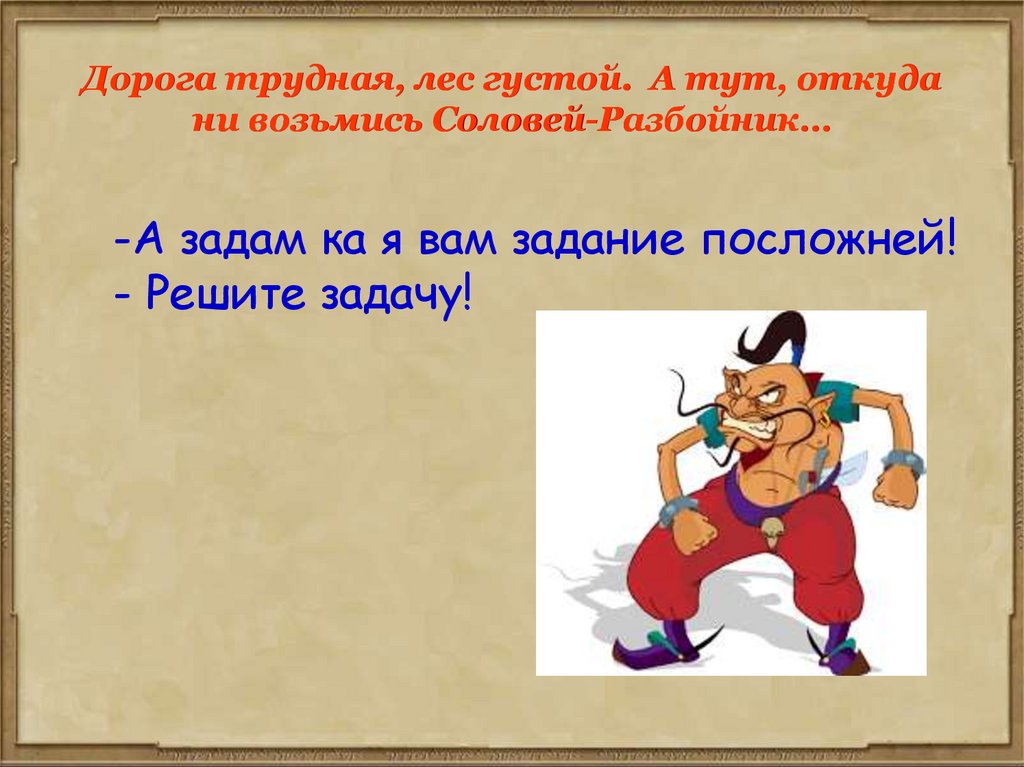 Дорога трудная, лес густой. А тут, откудани возьмись Соловей-Разбойник…