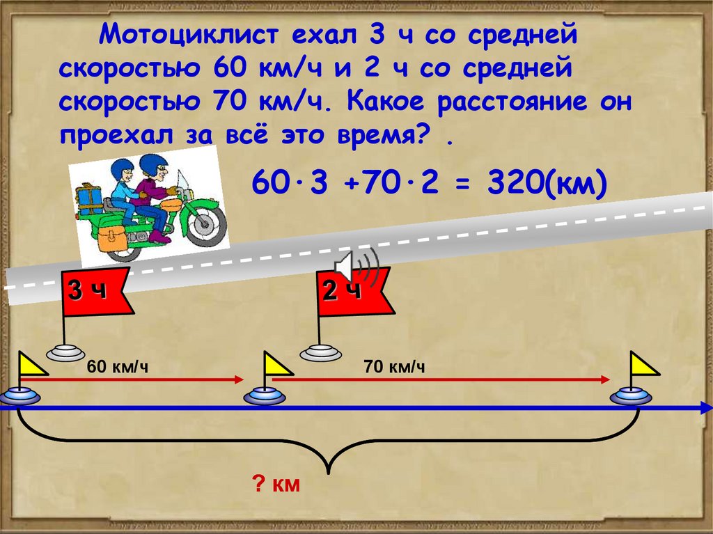 Мотоциклист ехал 3 ч со среднейскоростью 60 км/ч и 2 ч со средней