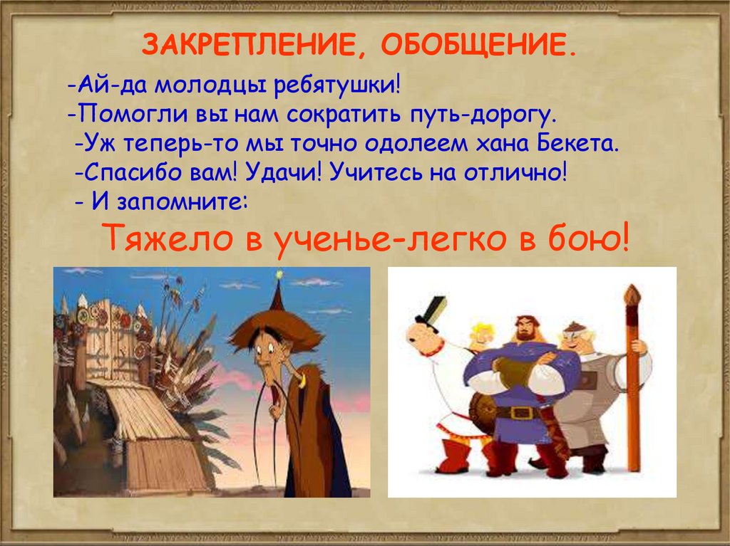 ЗАКРЕПЛЕНИЕ, ОБОБЩЕНИЕ.-Ай-да молодцы ребятушки!