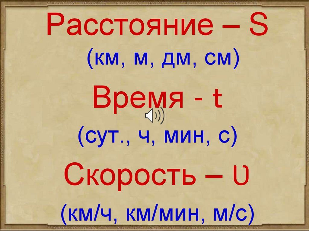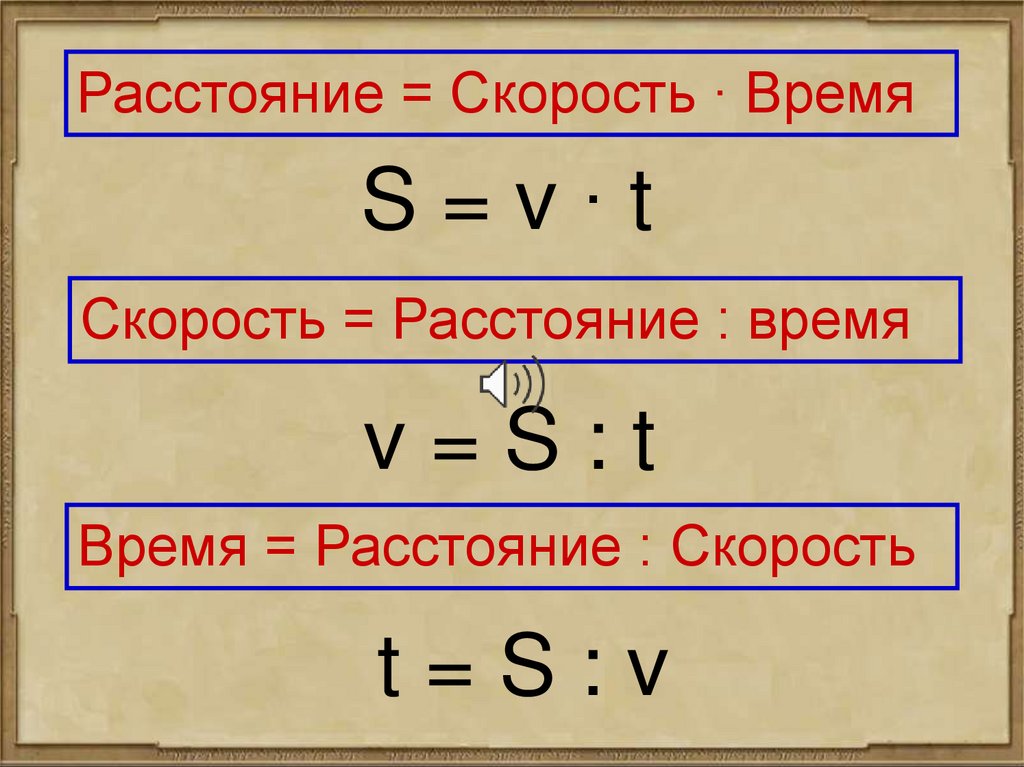 Расстояние = Скорость ∙ ВремяS=v∙t