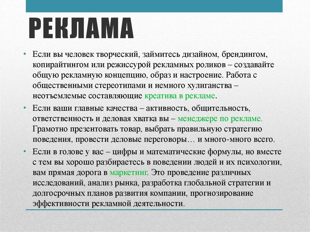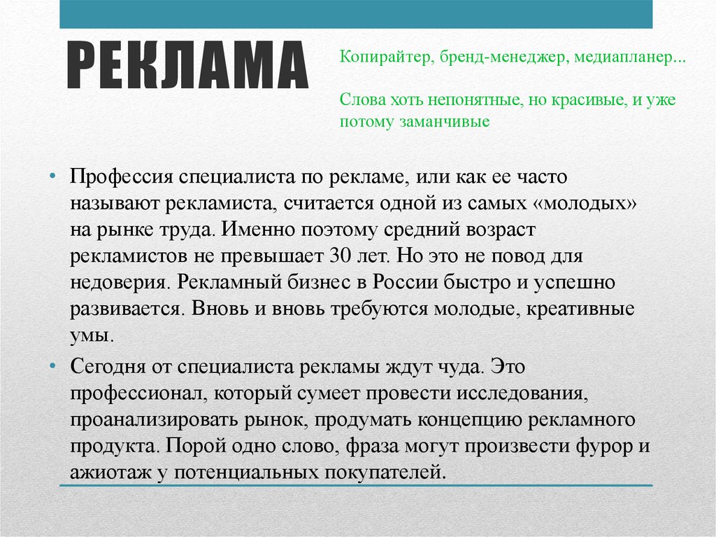 РЕКЛАМАРеклама и профессии