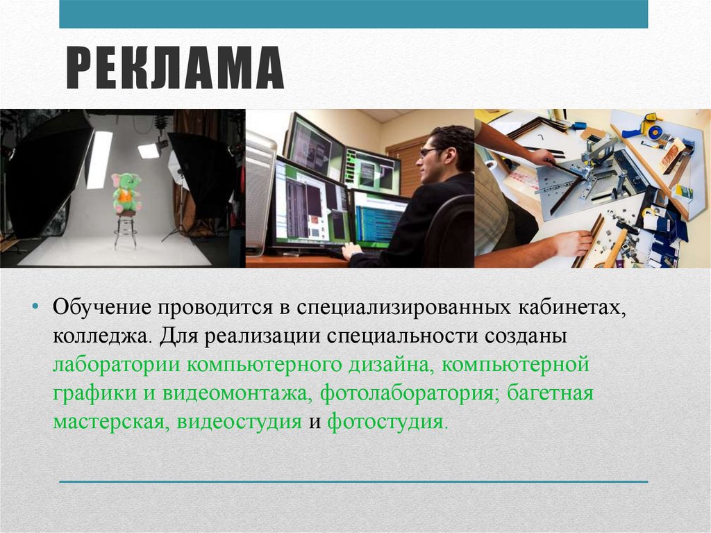 РЕКЛАМА• Обучение проводится в специализированных кабинетах,