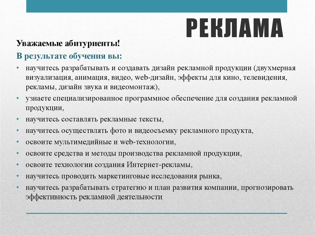 Уважаемые абитуриенты!В результате обучения вы: