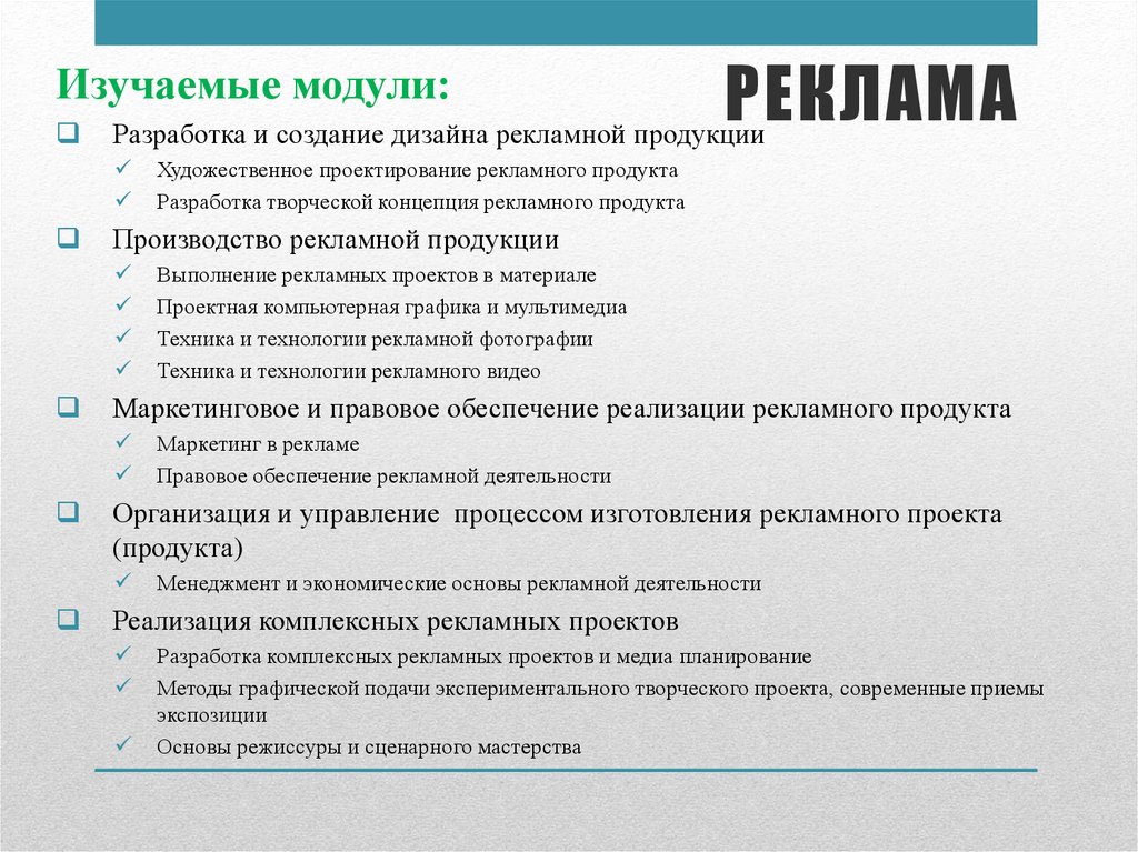 Изучаемые модули:Маркетинг в рекламе