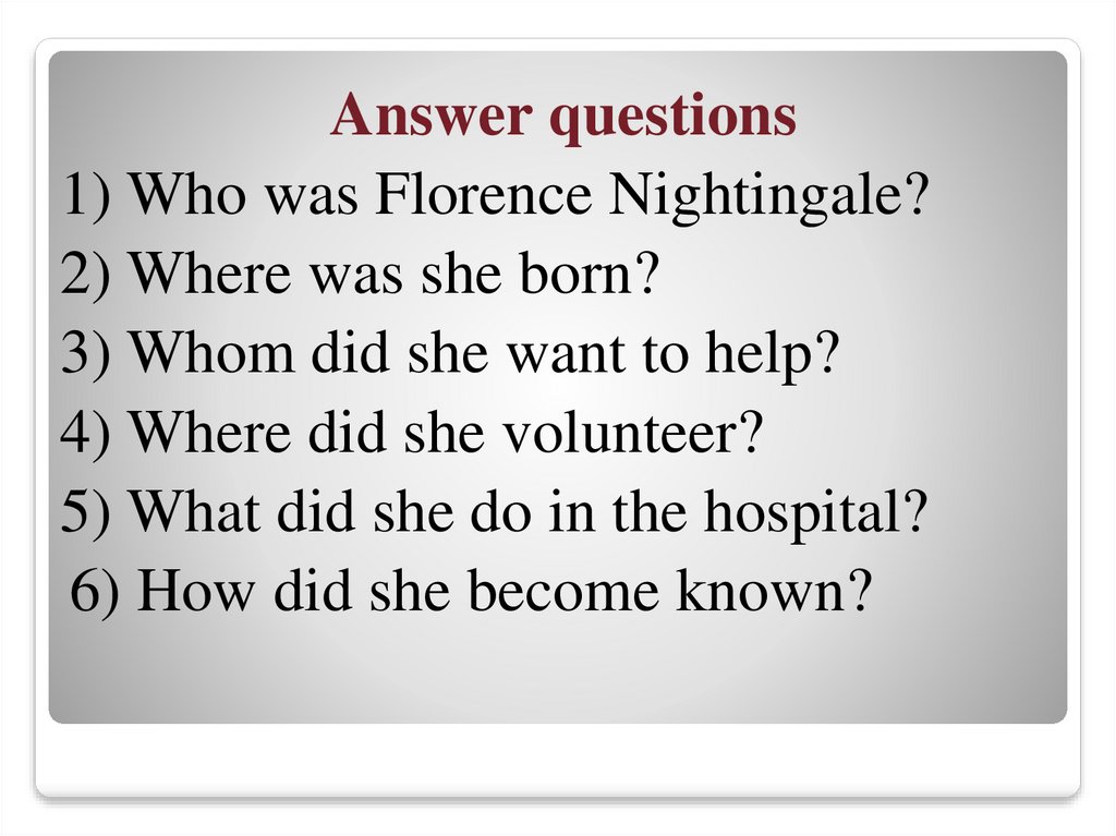 Answer questions1) Who was Florence Nightingale?