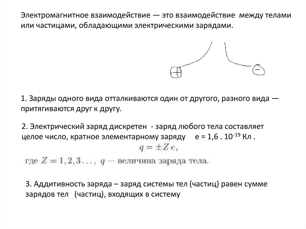 3. Аддитивность заряда – заряд системы тел (частиц) равен сумме