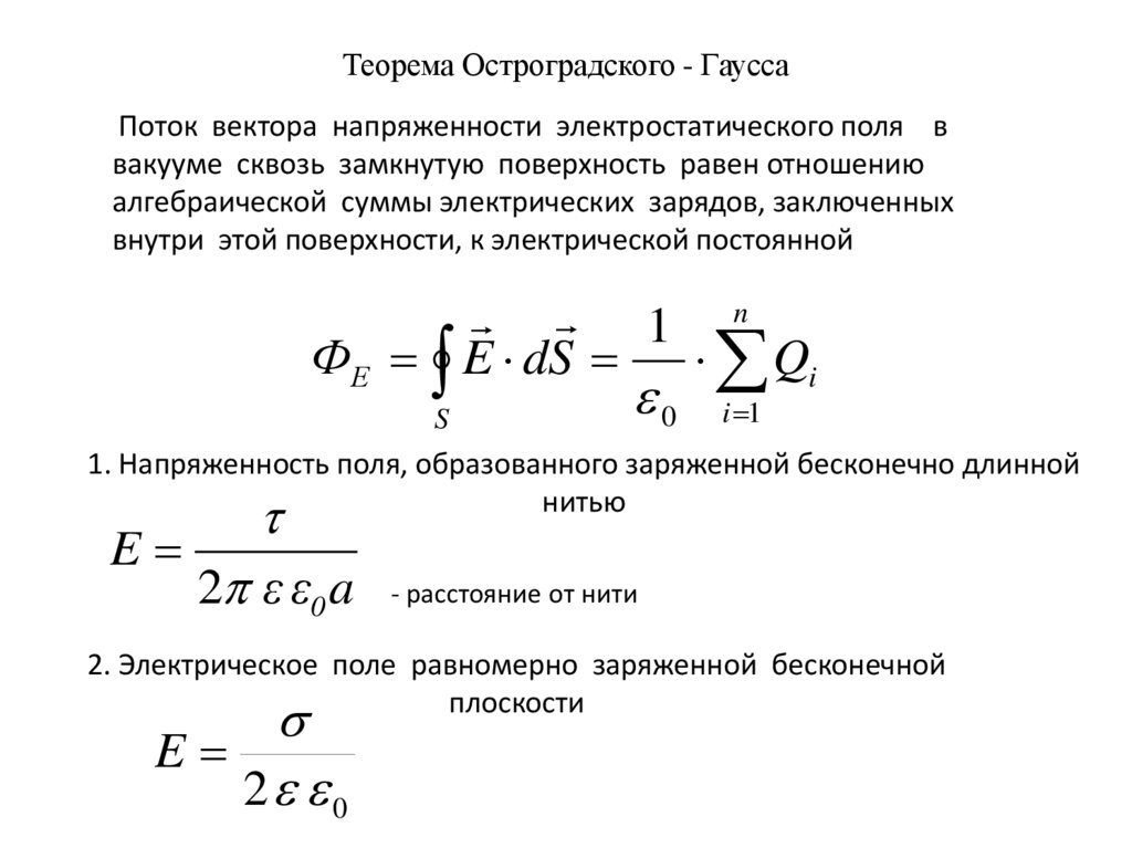 Теорема Остроградского - ГауссаПоток вектора напряженности электростатического поля в