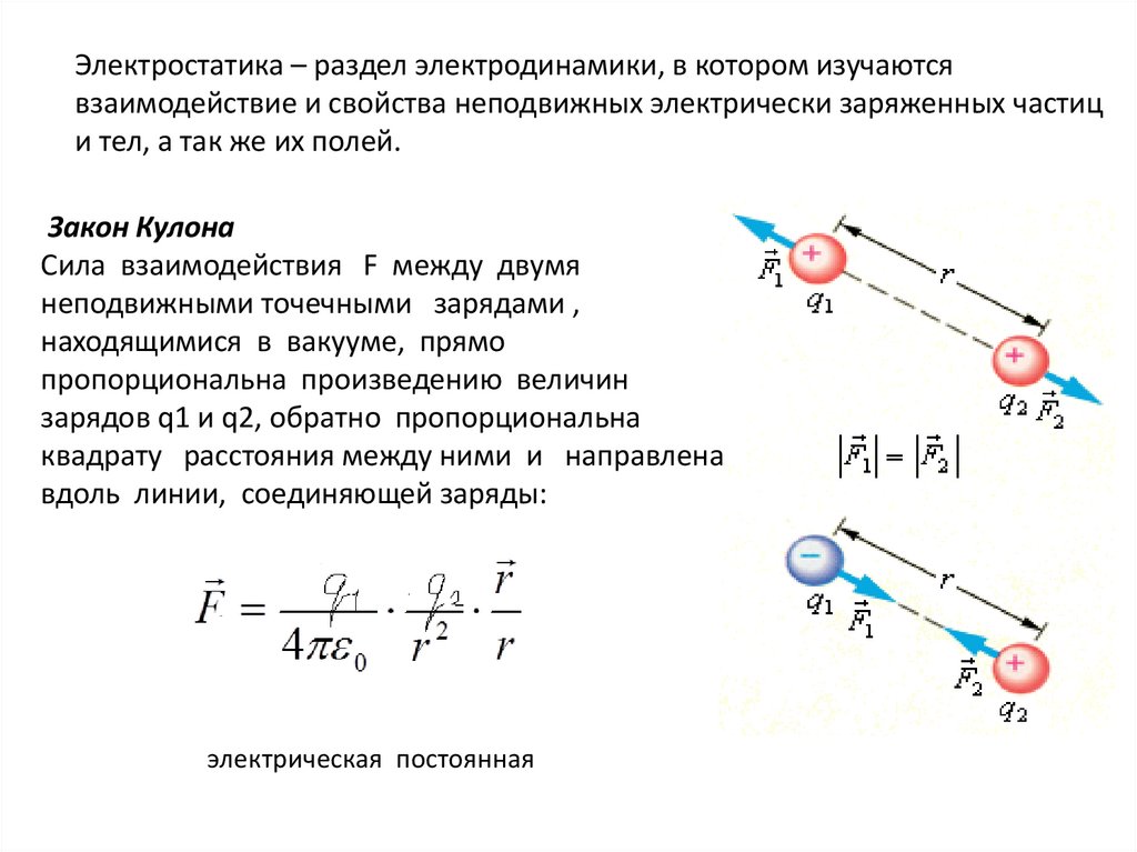 Электростатика – раздел электродинамики, в котором изучаютсявзаимодействие и свойства неподвижных электрически заряженных частиц