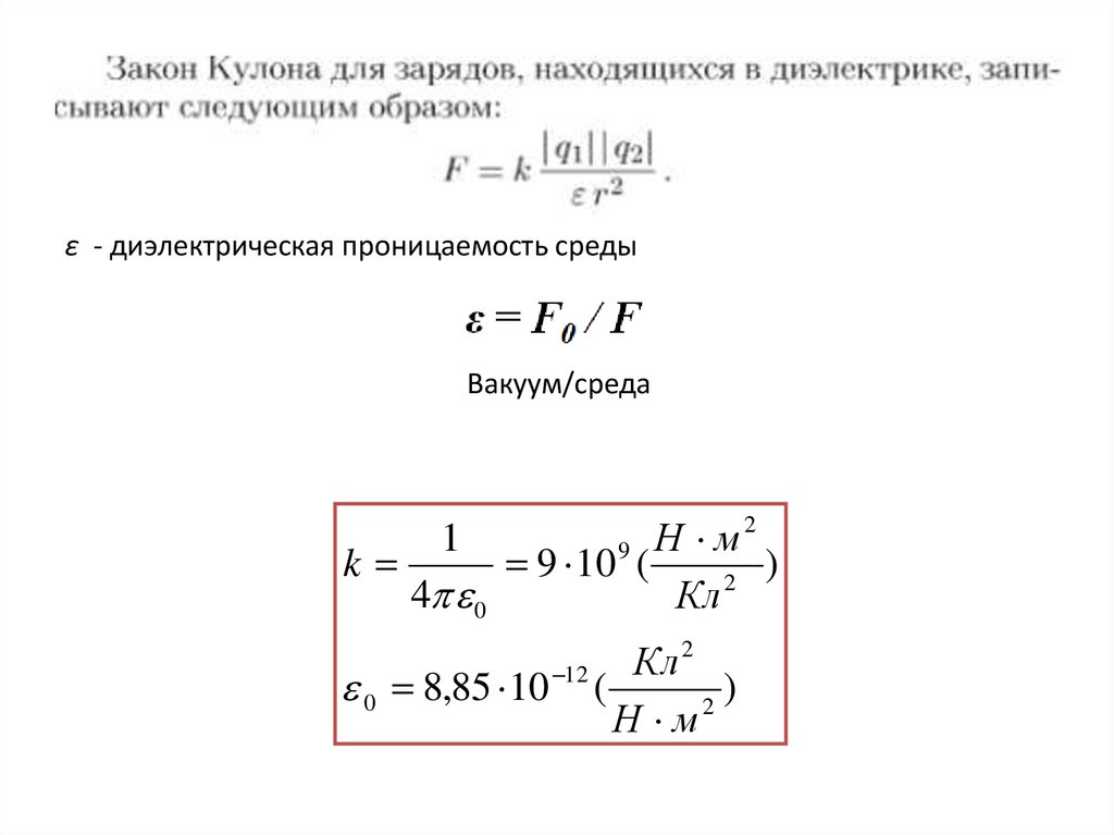ε - диэлектрическая проницаемость средыВакуум/среда