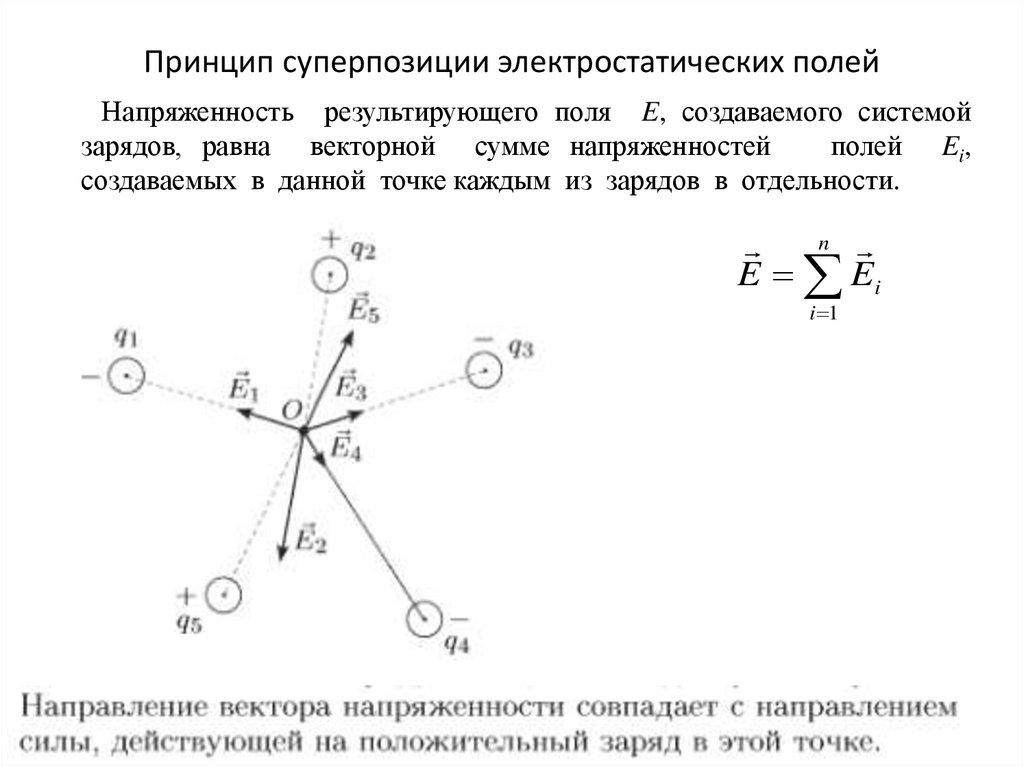 создаваемых в данной точке каждым из зарядов в отдельности.