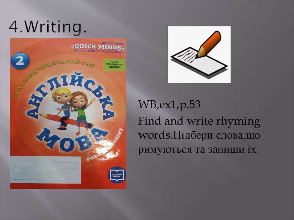 WB,ex1,p.53Find and write rhyming