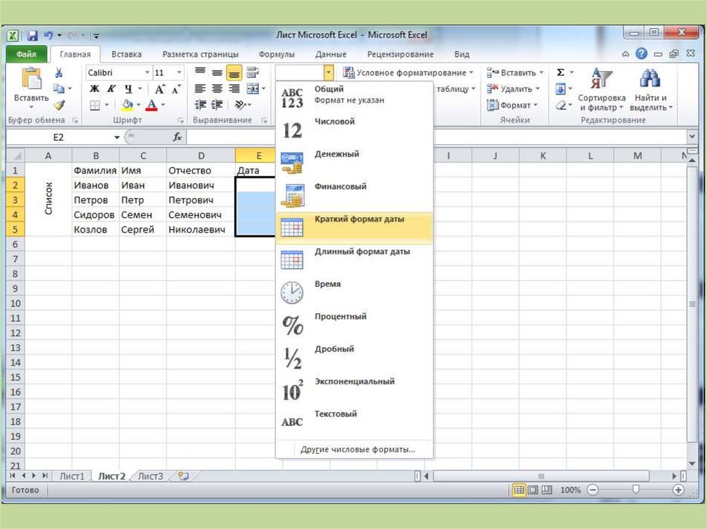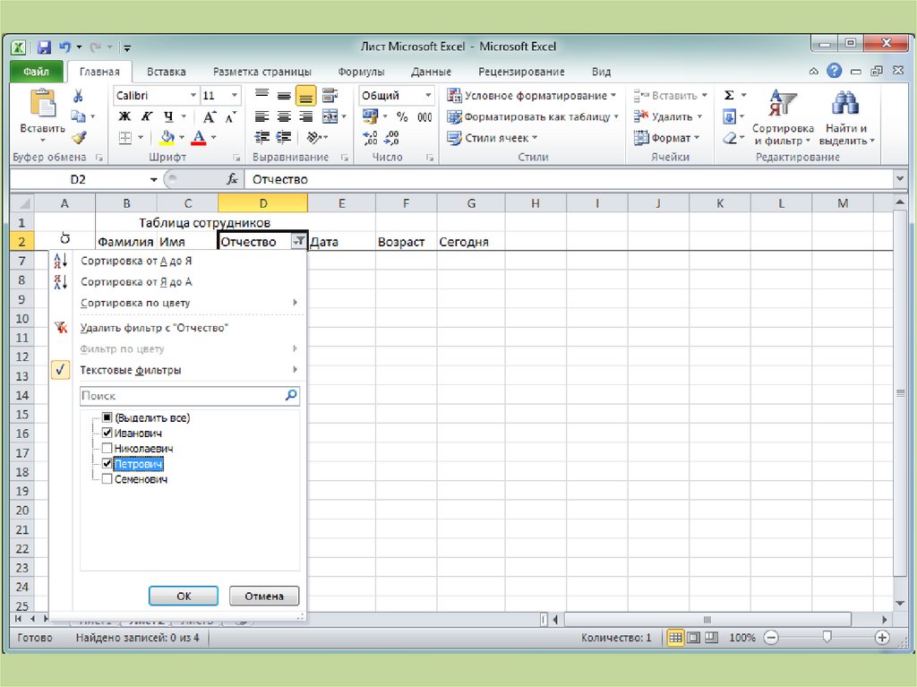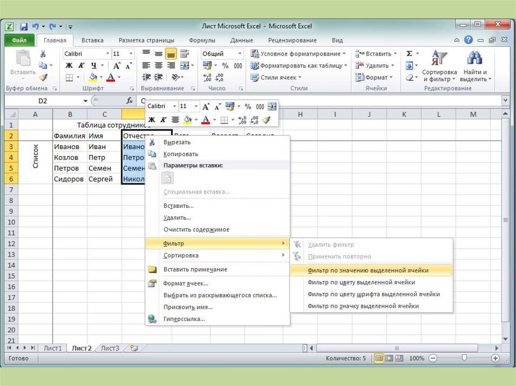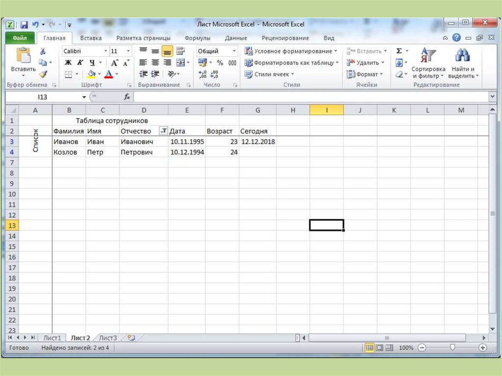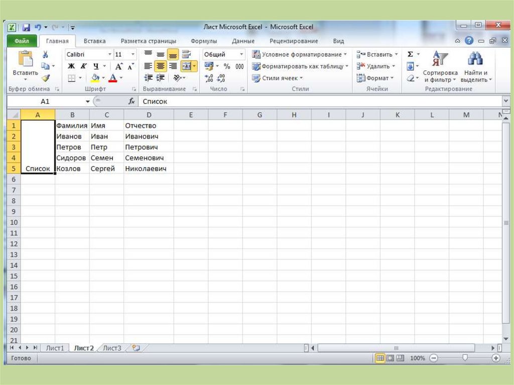 Лекция 3. Списки в MS Excel. Простейшие базы данных