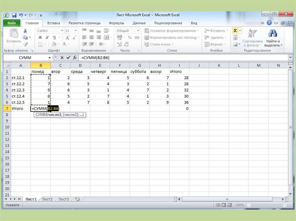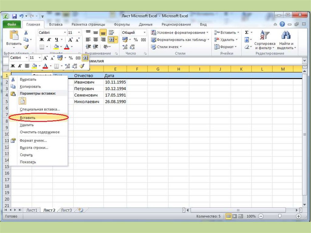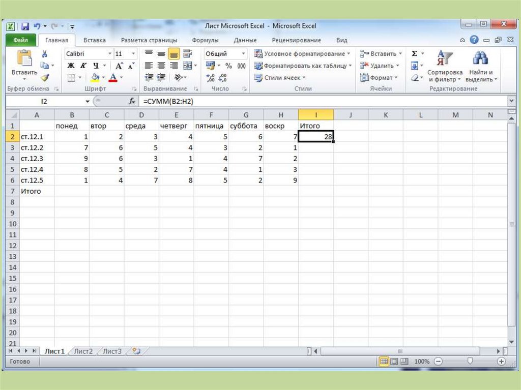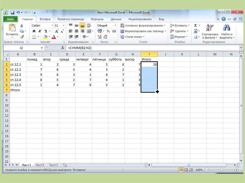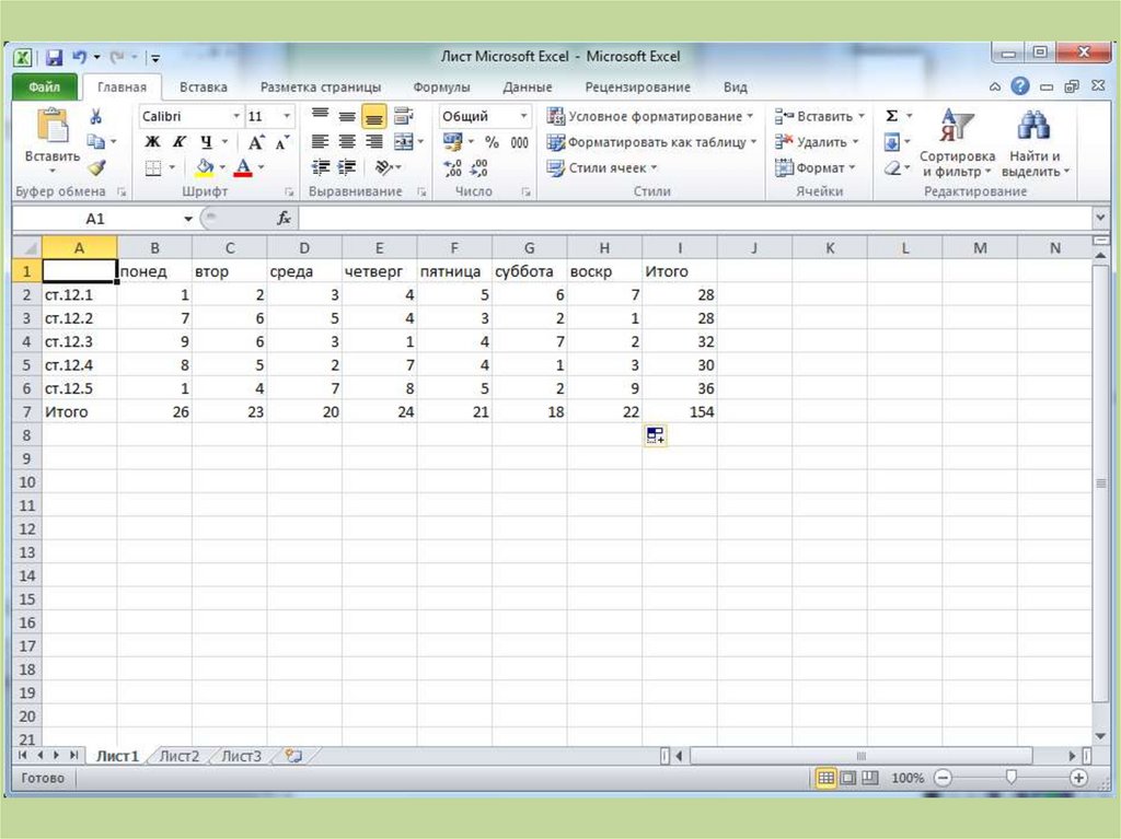 Лекция 3. Списки в MS Excel. Простейшие базы данных