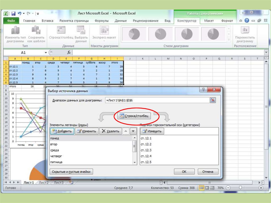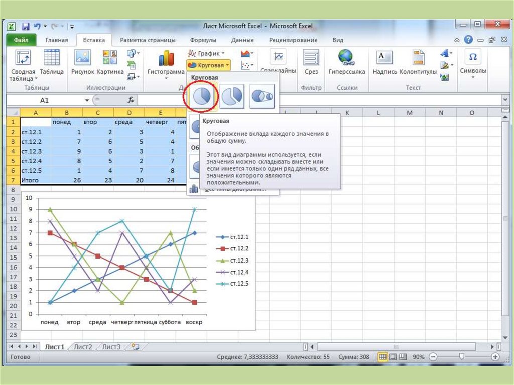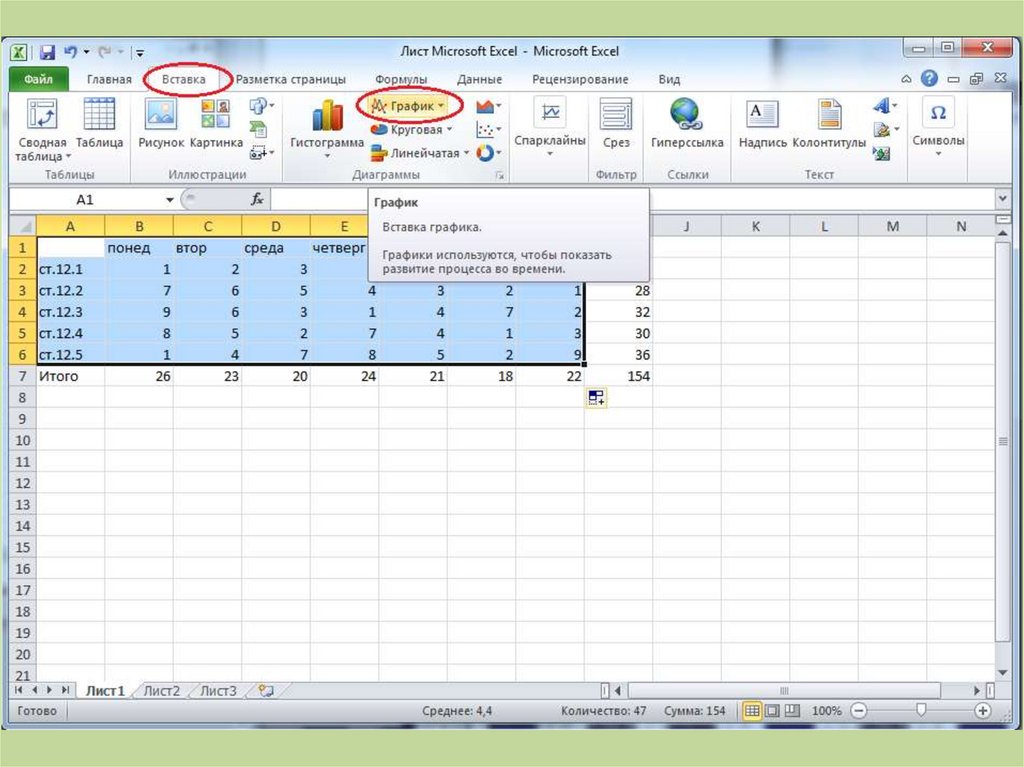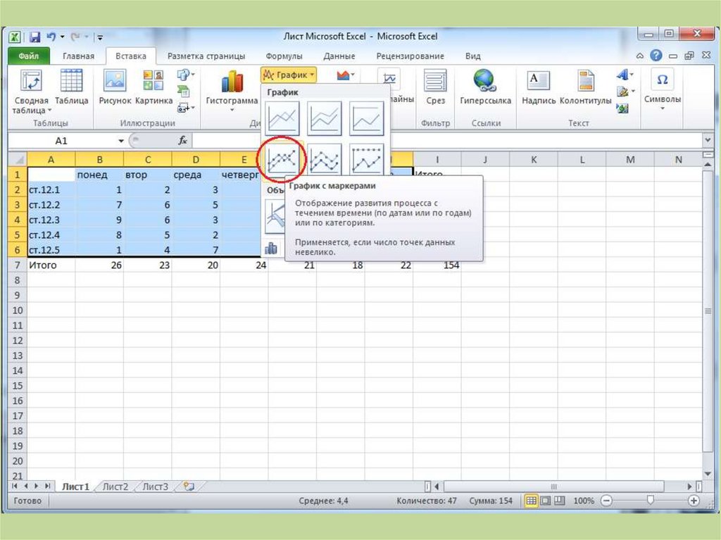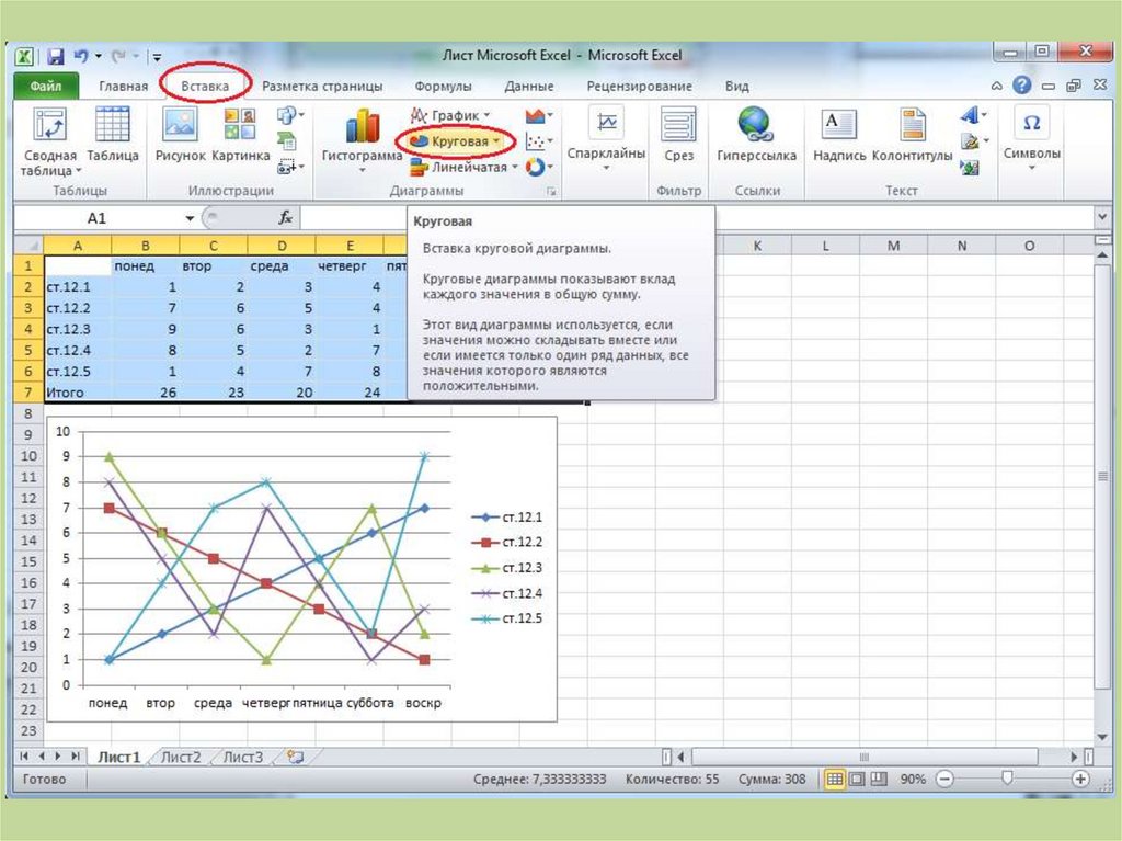 Построение графиков с помощью электронных таблиц Microsoft Excel