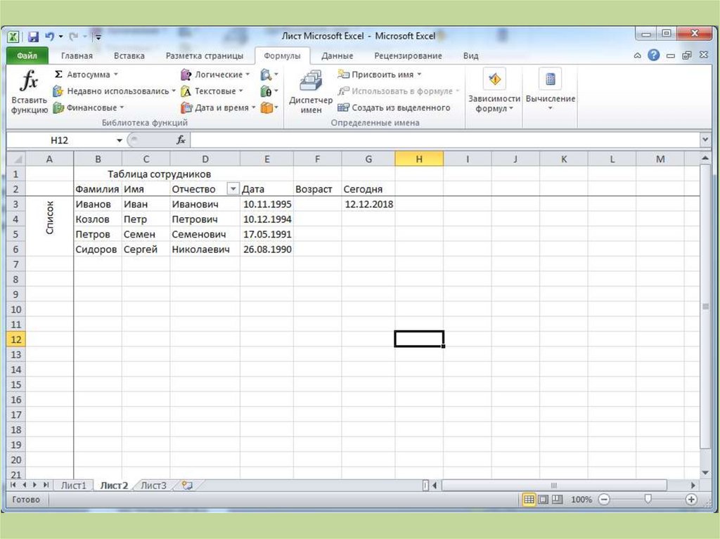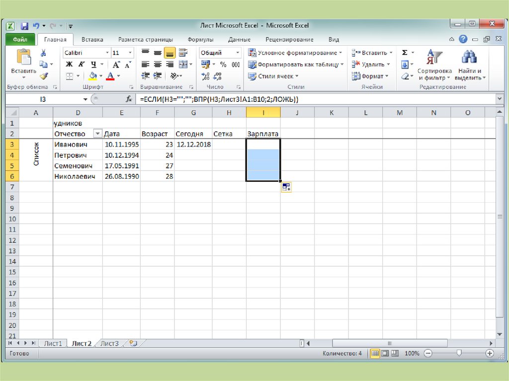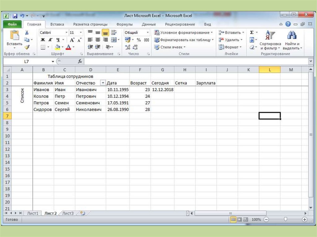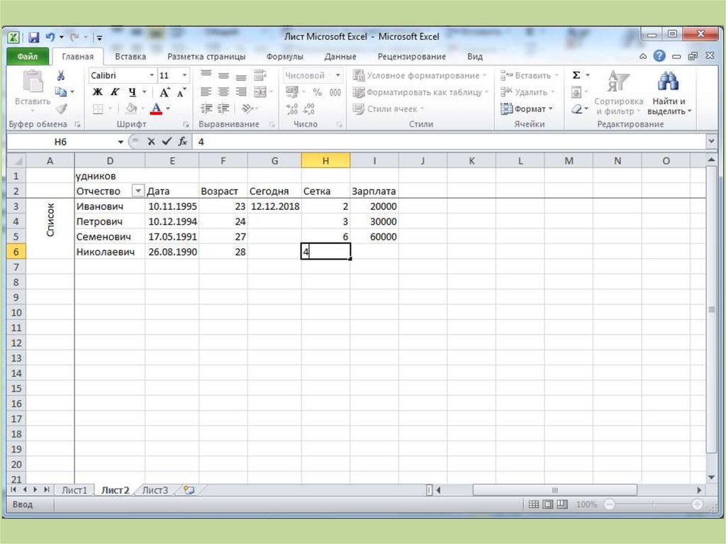 Внутримашинное проектирование списков MS Excel. (Тема 2)
