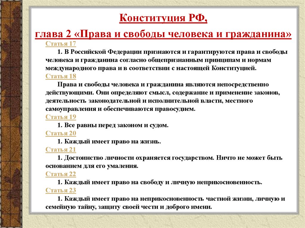Конституция РФ,глава 2 «Права и свободы человека и гражданина»