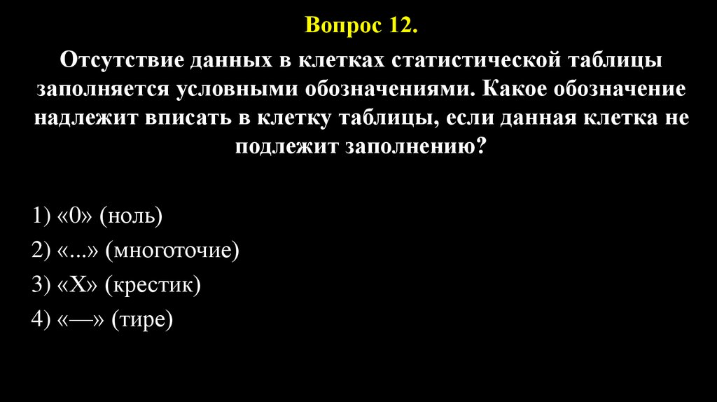 Вопрос 12.Отсутствие данных в клетках статистической таблицы