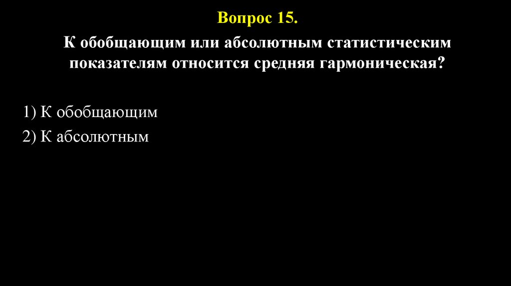Вопрос 15.К обобщающим или абсолютным статистическим