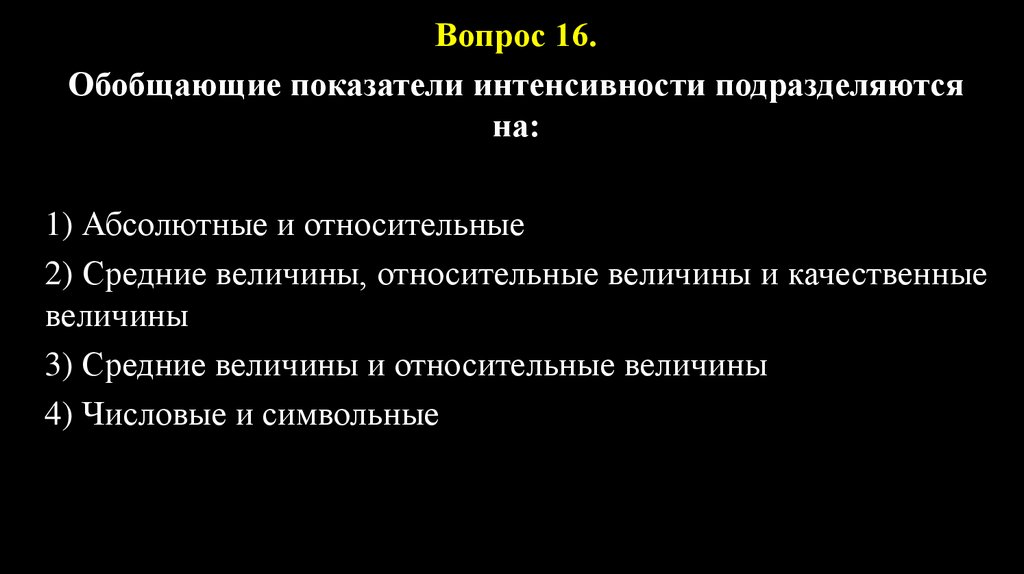 Вопрос 16.Обобщающие показатели интенсивности подразделяются