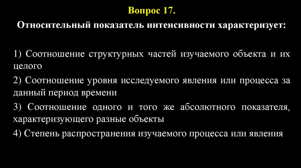 Вопрос 17.Относительный показатель интенсивности характеризует:
