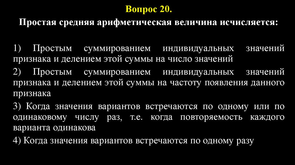 Вопрос 20.Простая средняя арифметическая величина исчисляется: