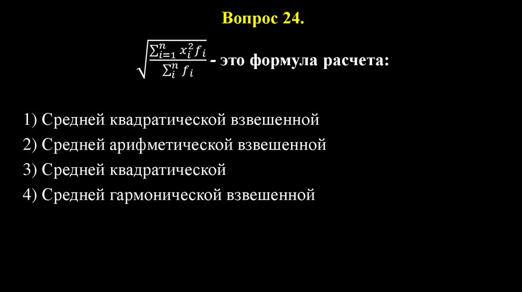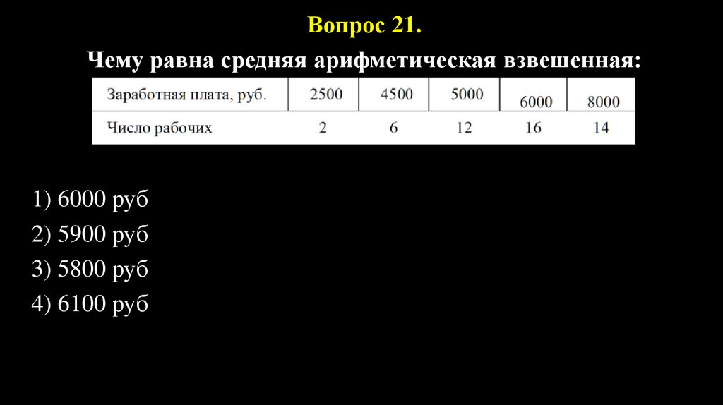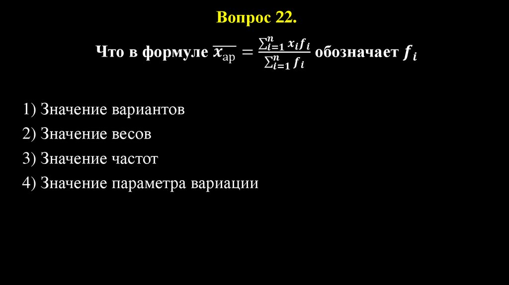 Вопрос 21.Чему равна средняя арифметическая взвешенная: