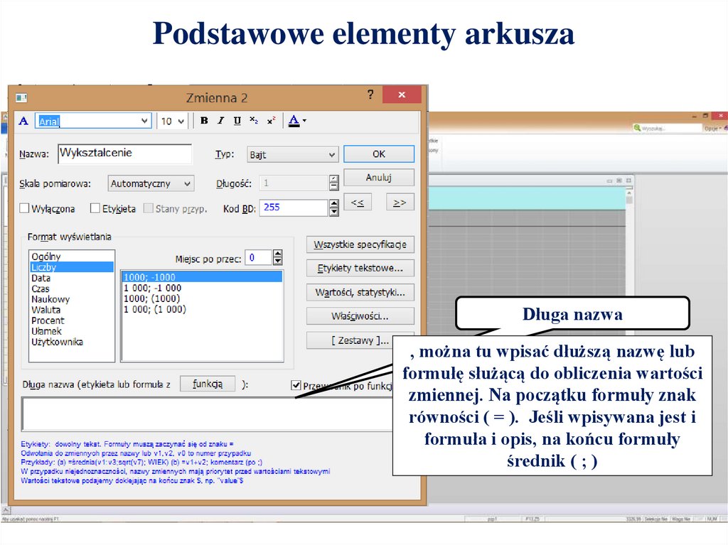 Podstawowe elementy arkuszaDługa nazwa