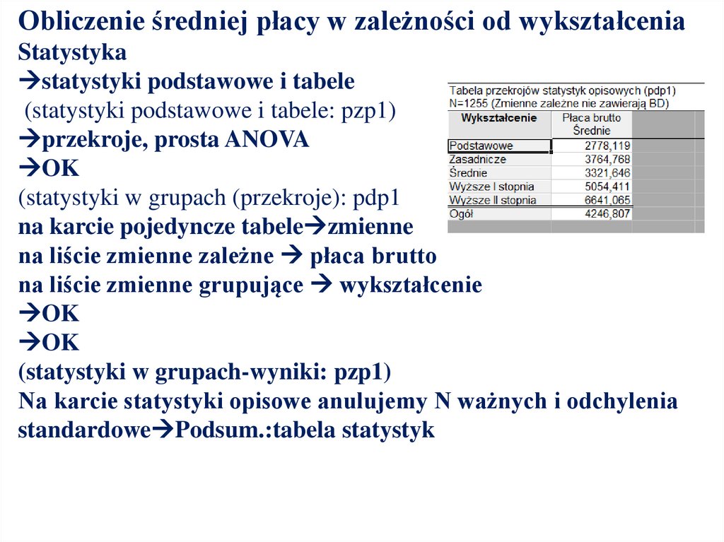 Obliczenie średniej płacy w zależności od wykształceniaStatystyka