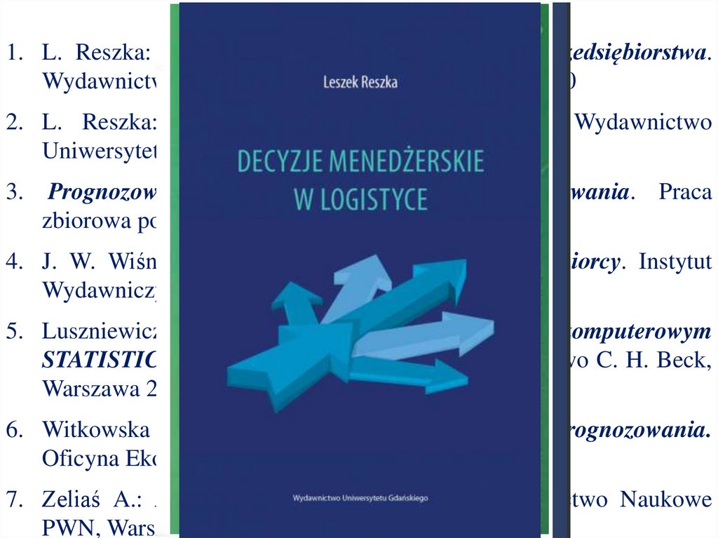 2. L. Reszka: Decyzje menedżerskie w logistyce. Wydawnictwo