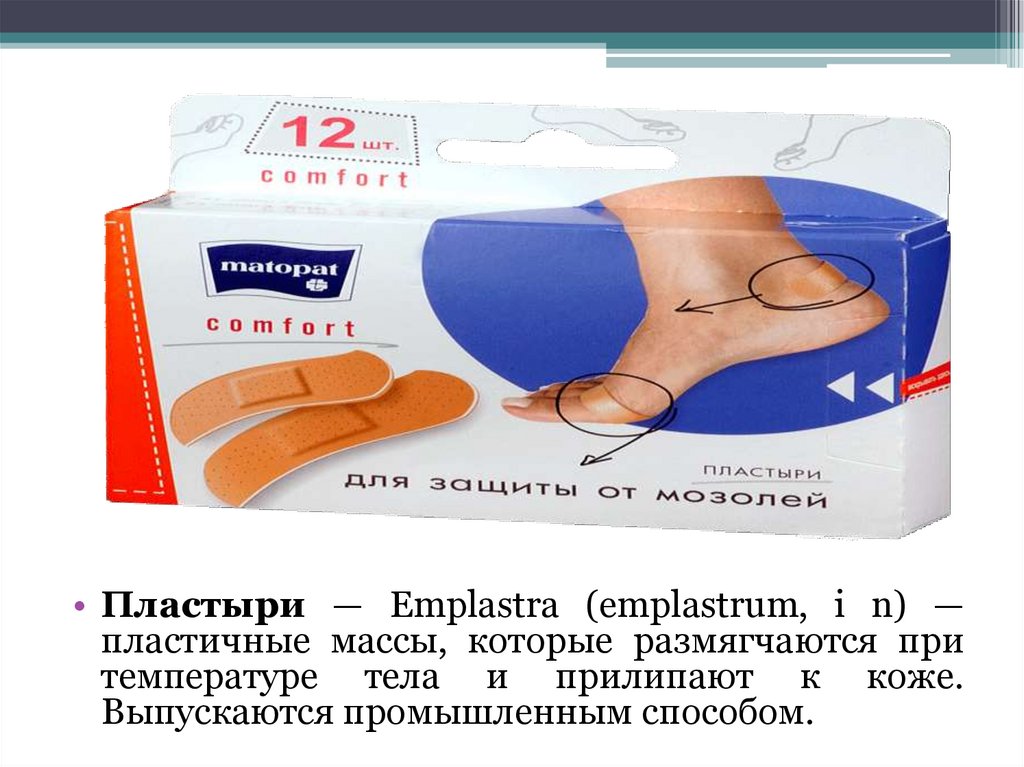 • Пластыри — Emplastra (emplastrum, i n) —пластичные массы, которые размягчаются при