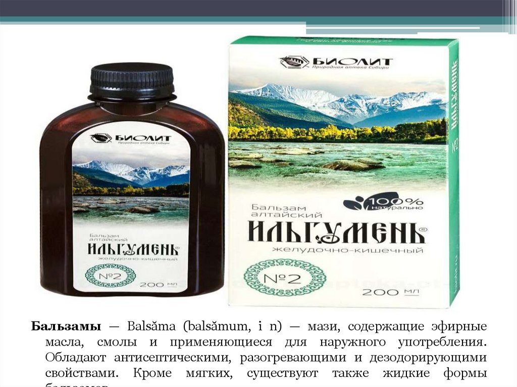 Бальзамы — Balsăma (balsămum, i n) — мази, содержащие эфирныемасла, смолы и применяющиеся для наружного употребления.