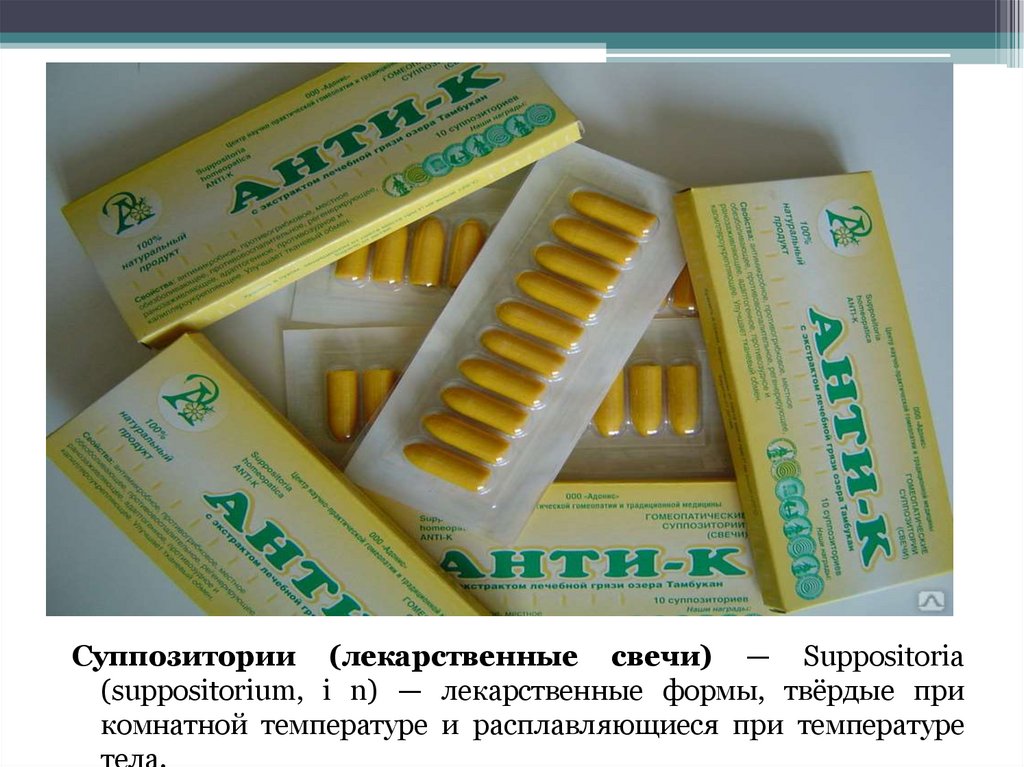 Суппозитории (лекарственные свечи) — Suppositoria(suppositorium, i n) — лекарственные формы, твёрдые при