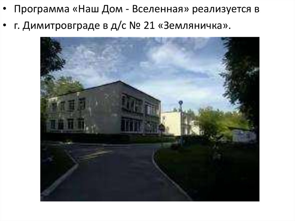 • Программа «Наш Дом - Вселенная» реализуется в• г. Димитровграде в д/c № 21 «Земляничка».