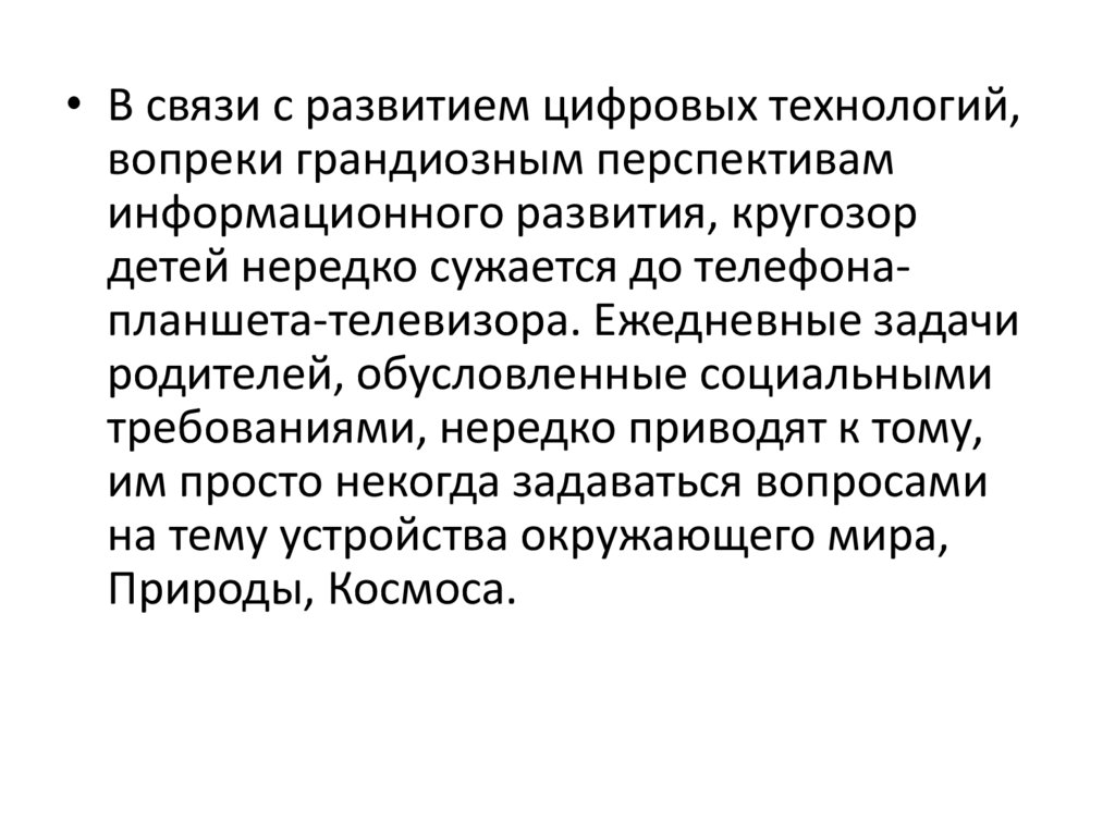 детей нередко сужается до телефонапланшета-телевизора. Ежедневные задачи