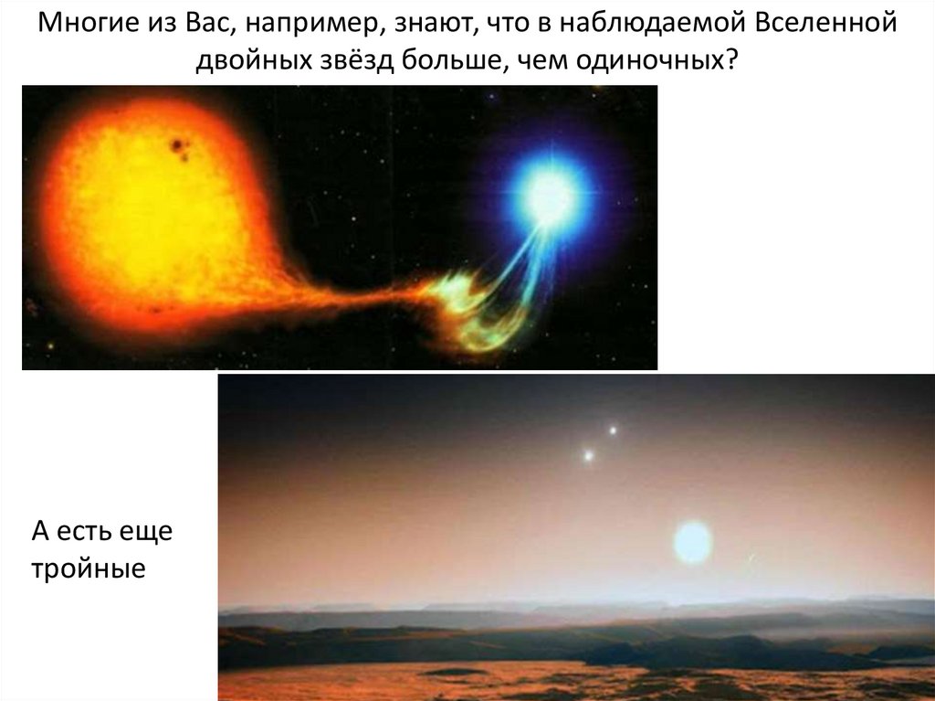Многие из Вас, например, знают, что в наблюдаемой Вселеннойдвойных звёзд больше, чем одиночных?
