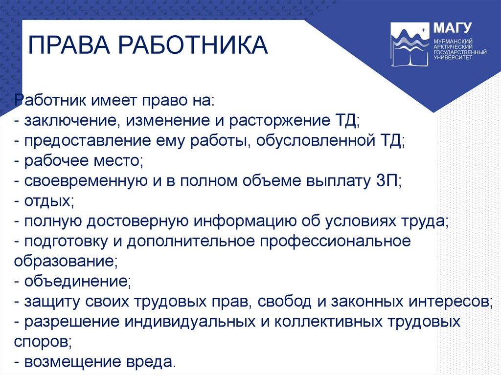 ПРАВА РАБОТНИКАРаботник имеет право на: